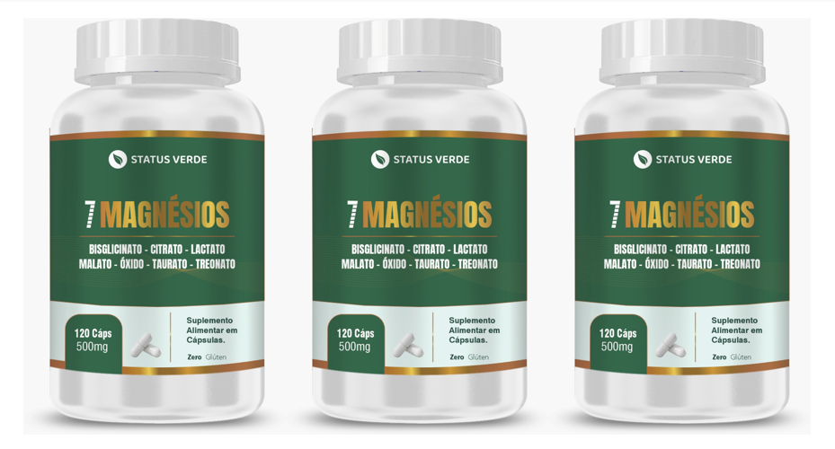 Blend com 7 Magnésios Status Verde, Contém 03 pote com 120 Cápsulas total 360 Cápsulas