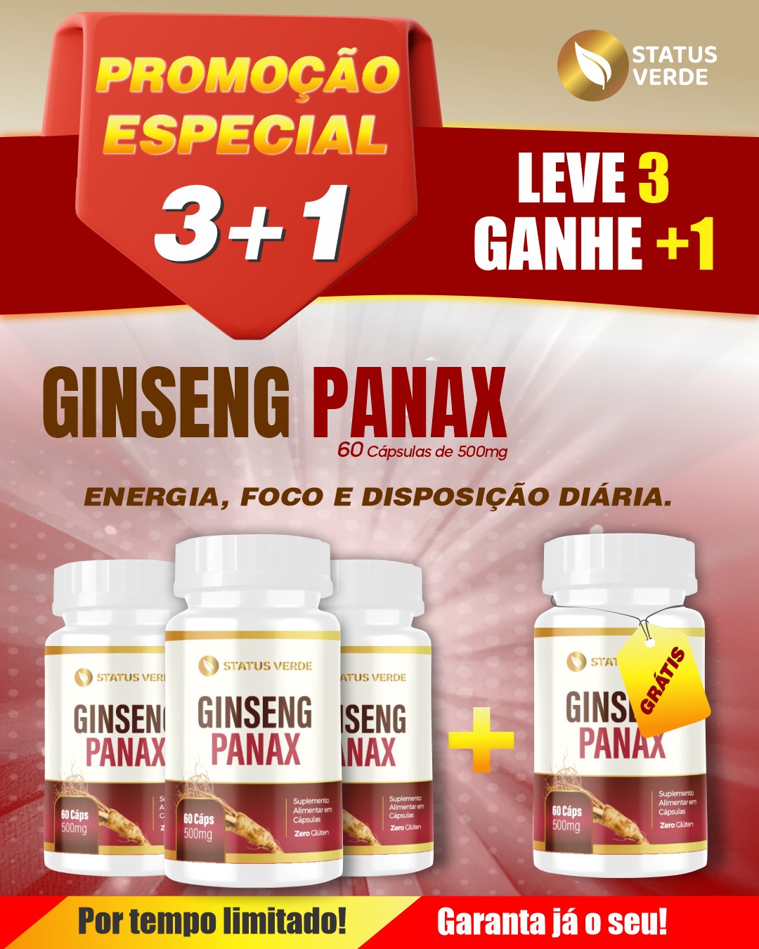 Kit 3 Ginseng Panax 500 mg – 180 Cápsulas | Status Verde